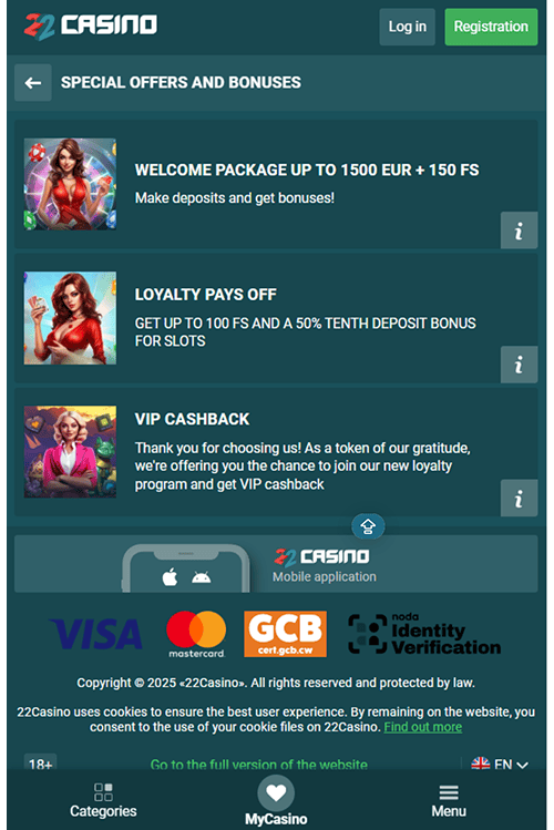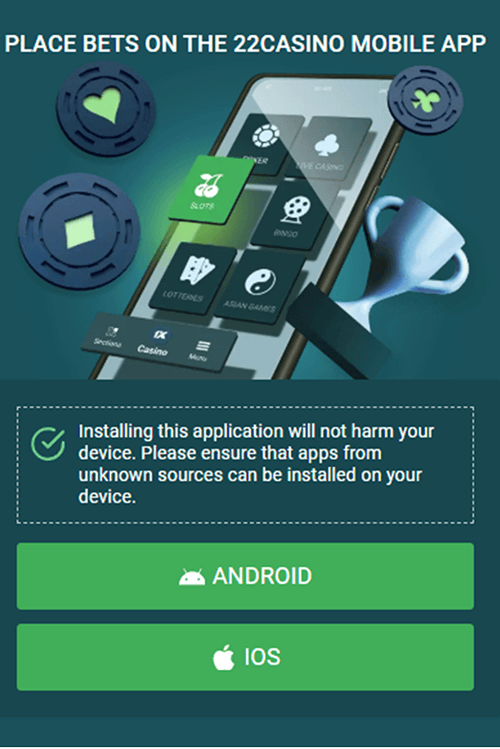 Če želite, lahko namestite tudi 22Casino APK, ki je na voljo na uradni spletni strani igralnice.
